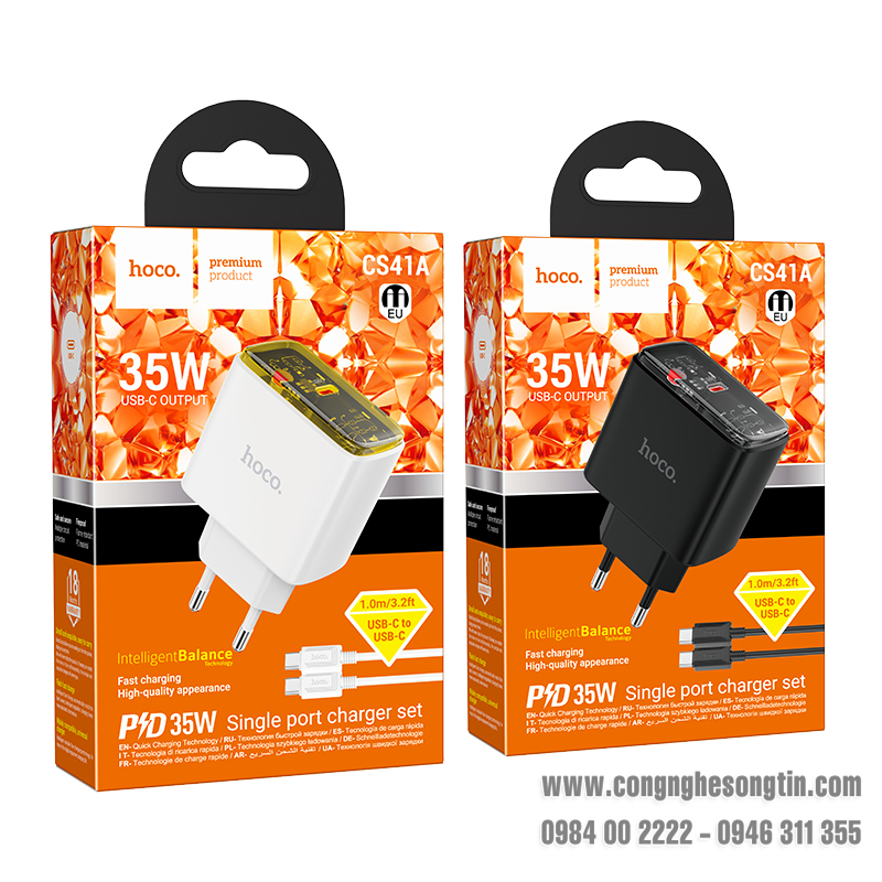 Bộ Sạc 1 Cổng CS41A PD35W Type-C To Type-C là một sản phẩm của thương hiệu HOCO, một thương hiệu nổi tiếng về phụ kiện điện thoại chất lượng cao.