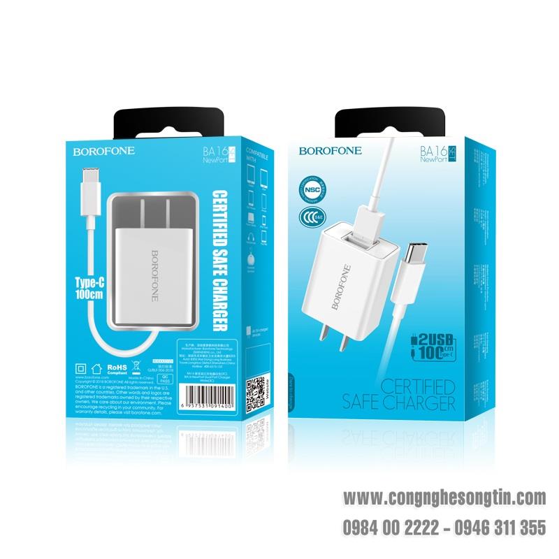 BOROFONE - Bộ Cóc Cáp Sạc BA16 - Cổng Type C 2.1A