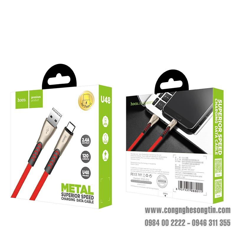 Hoco - Dây Cáp Sạc Nhanh U48 Cổng Type C - Bọc Vải Thời Trang - 120cm tốc độ cao cho USB tới Type C 1.2m với kết nối bằng vải dệt kim và đầu nối hợp kim nhôm